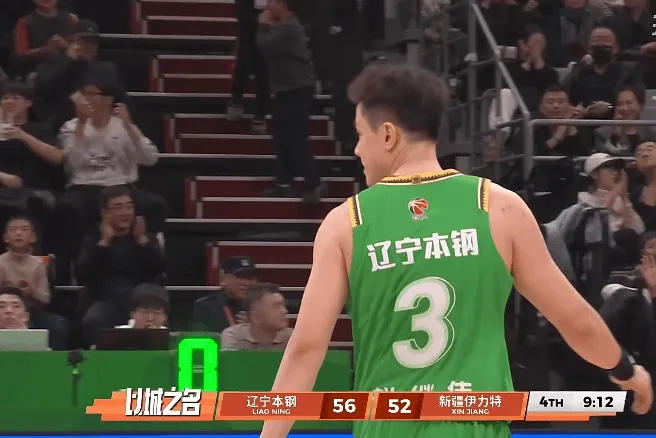 第四节比赛中,赵继伟干拔三分投进得到14分,辽宁末节56-52领先新疆。
