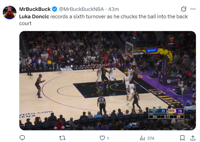这场比赛在终场前1分02秒,东契奇命中了一个锁定胜局的三分球,这个三分球命中后湖人主场球迷疯狂的呐喊。但要知道东契奇此前曾两次丢锅,一次是对阵魔术的绝杀球,另一次对阵快船时的空位三分追分机会,这两次东契奇都丢锅了。