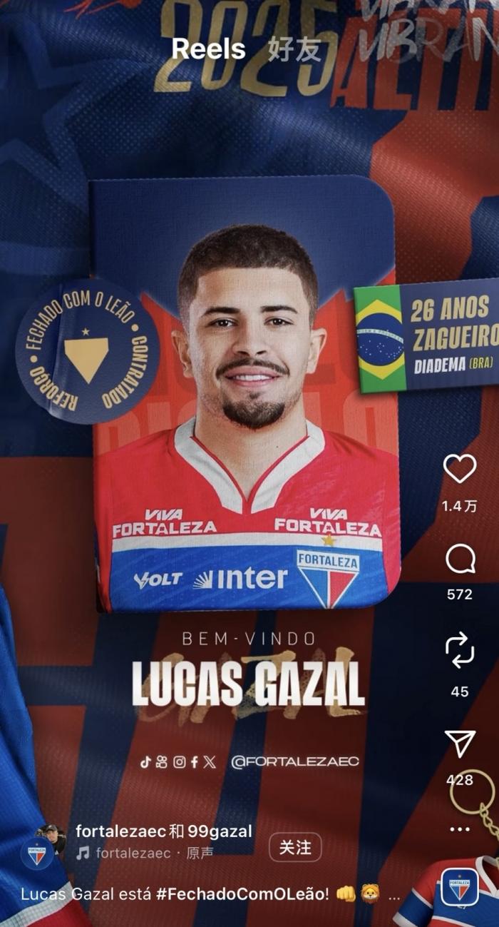 直播吧8月30日讯 巴甲球队福塔雷萨今日官方宣布,前泰山外援卡扎尔租借加盟球队,租期至今年12月31日,并附带买断选项。